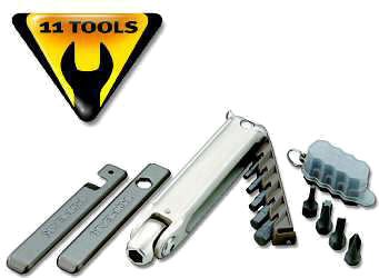 サドルバッグの隙間に入れるのにちょうど良い。 ただし、STIレバーの固定用ネジにちょっと届かないので、5mmのアーレンキーは 別に持っていたほうが良いかも。(転倒してブラケットが曲がったときなど)