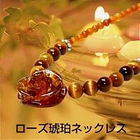 ローズ琥珀ネックレス 50cm