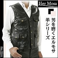 エルモサ ラム革パッチワーク 多機能ベスト M