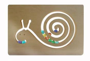 大きな殻が特徴的なかたつむりをかたどったデザインに、きれいな10個のビー玉を入れました。